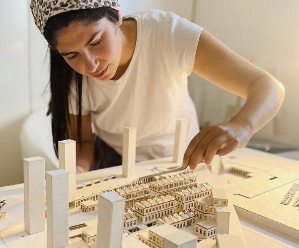 S’il convient d’insister sur ce qui distingue physique et numérique, que ne soit pas en évitant les avantages de leur combinaison. Pour être « imprimés » en 3D, tous les immeubles de la Cité Jardin ont été modélisés, autrement dit numérisés et travaillés à l’ordinateur en fonction de leurs particularités. Chez Modulus, on sait aussi dessiner une esquisse, peindre une aquarelle pour exprimer l’esprit d’un projet.
