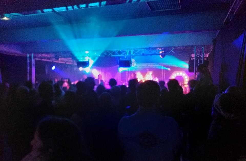 Des lumières de scène produisent des effets de halo et de flou, d’autres ont des couleurs saturées qui créent l’ambiance festive. Ce soir, la MJC est un club où l’ambiance est énergique et électrique. La MJC est dans son rythme.