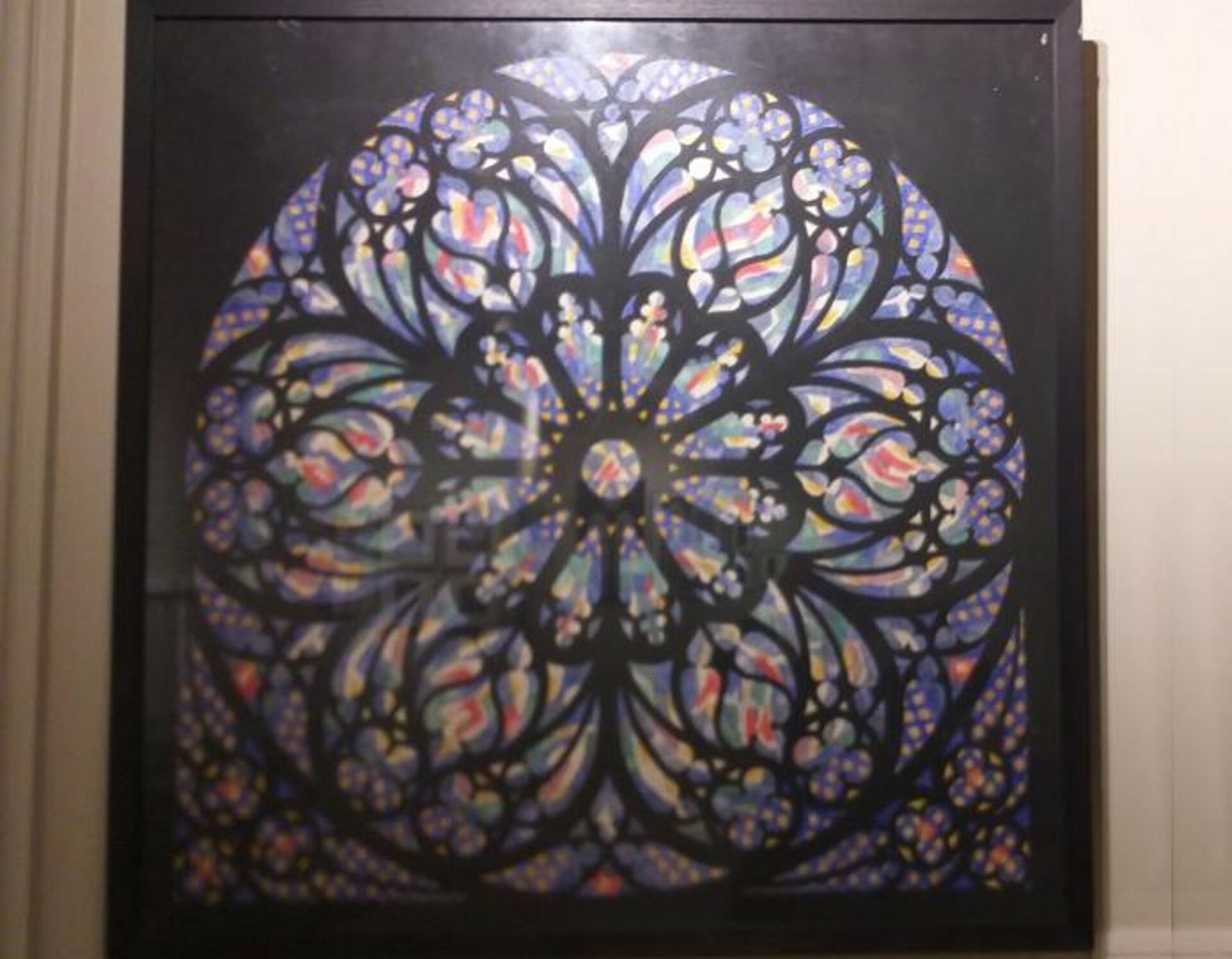 Car la lumière s’exprime dans le vitrail et la peinture sur toile selon des formules au mieux parallèles sinon opposées. La grande salle du fond, dans une scénographie limpide conçue par Angèle Cloup, en fait démonstration.