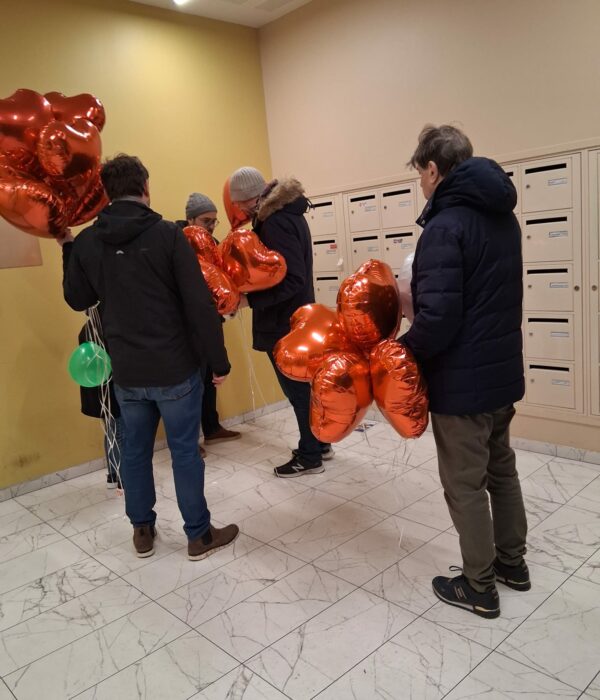 Comme chaque événement ADHEL, un groupe de travail s’est formé, s’est concerté. Les achats ont été réalisés : les ballons ne sont pas chers. L’hélium explose le budget, même en se fournissant chez Gifi. Ahmed, René, Nadya, Charlotte, Jonathan, Francia…on se retrouve tous chez Karim le soir du 13 février pour gonfler et ficeler les 80 ballons prévus.