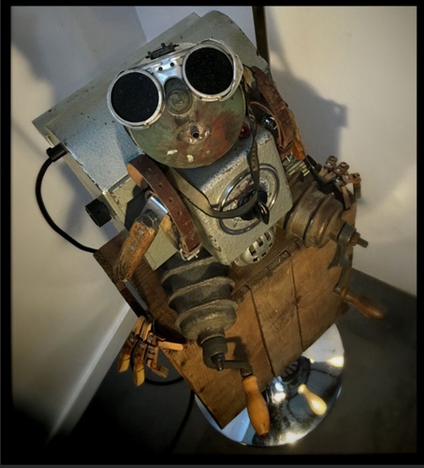 Quand on lui demande où il trouve son inspiration, il répond qu’il n’en sait rien. Qu’il laisse parler les objets. C’est vrai, il aime l’univers punk, la mécanique, le cinéma, la science-fiction. Mais chez lui, c’est un mélange d’inspirations diverses et de coups de cœur qui le conduisent à créer. Lorsqu’il ramasse une pièce métallique, il sait qu’autour d’elle, il pourra raconter une histoire.